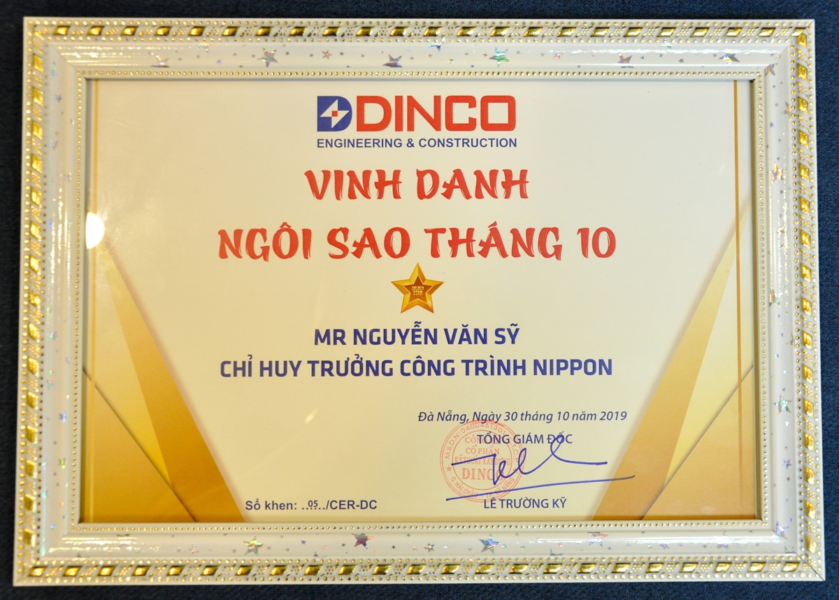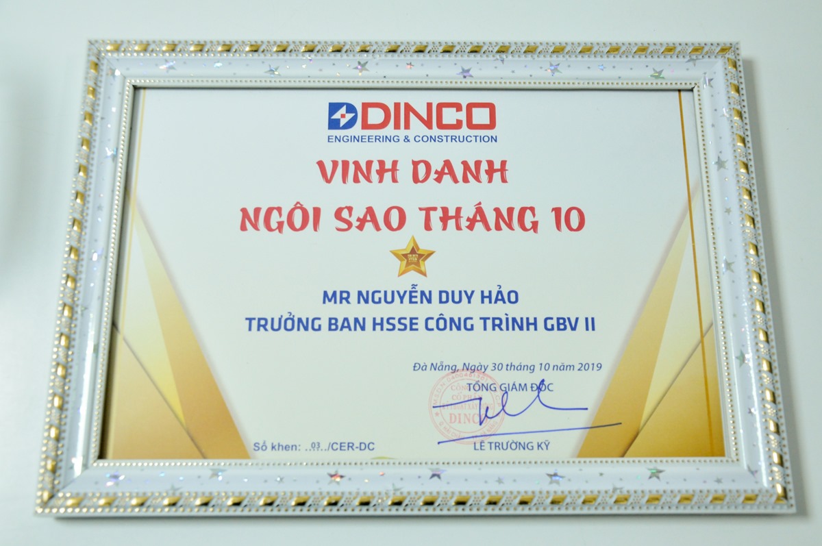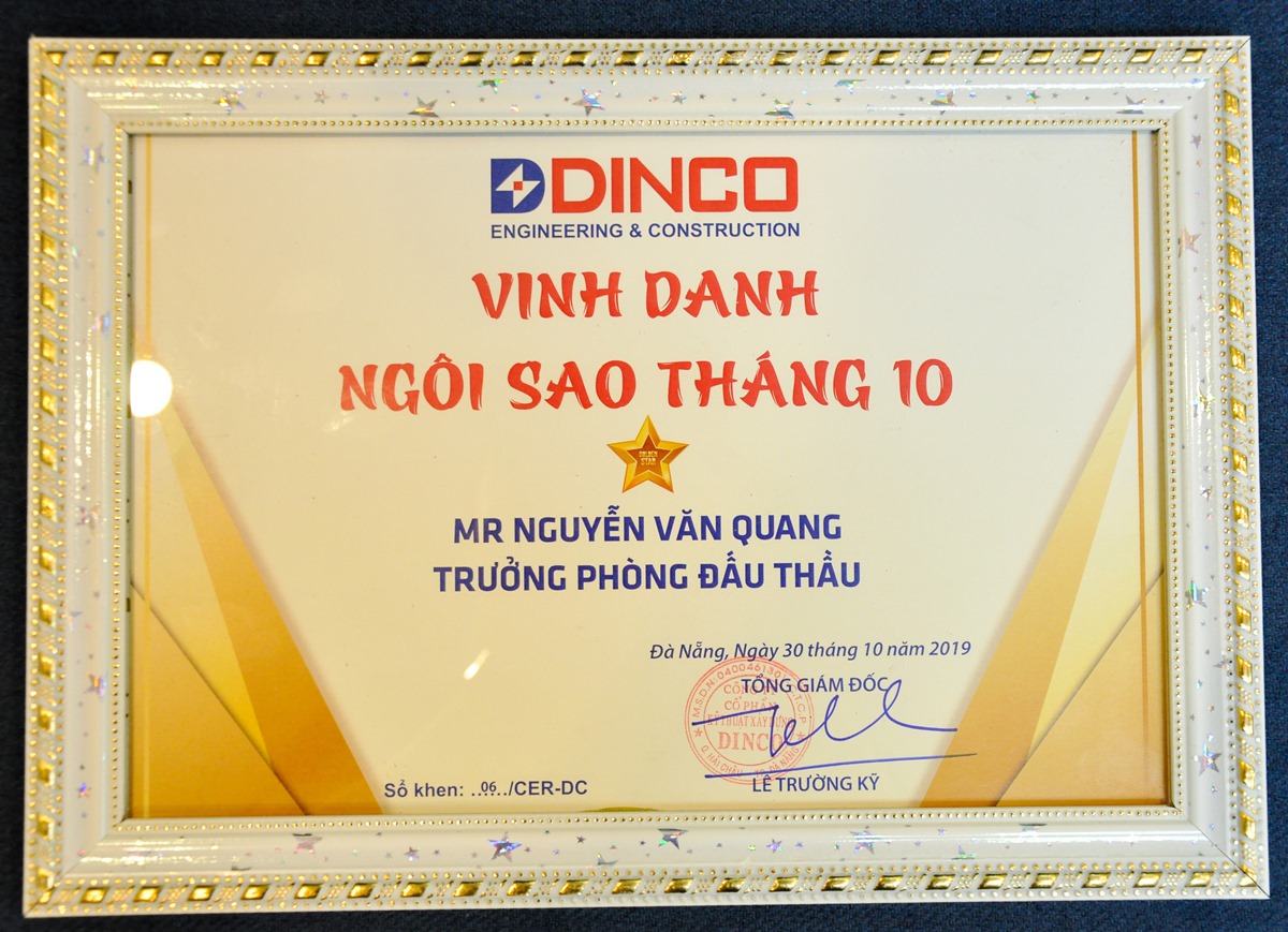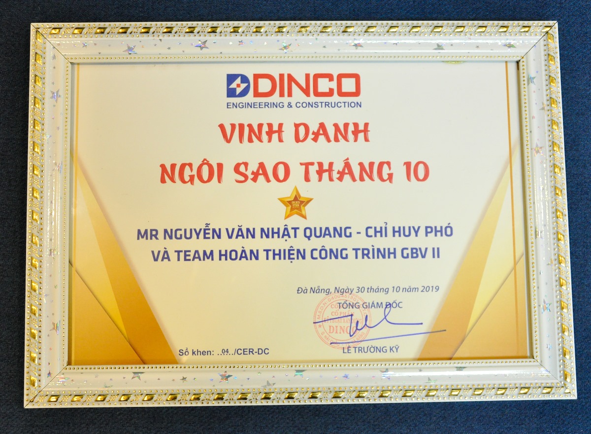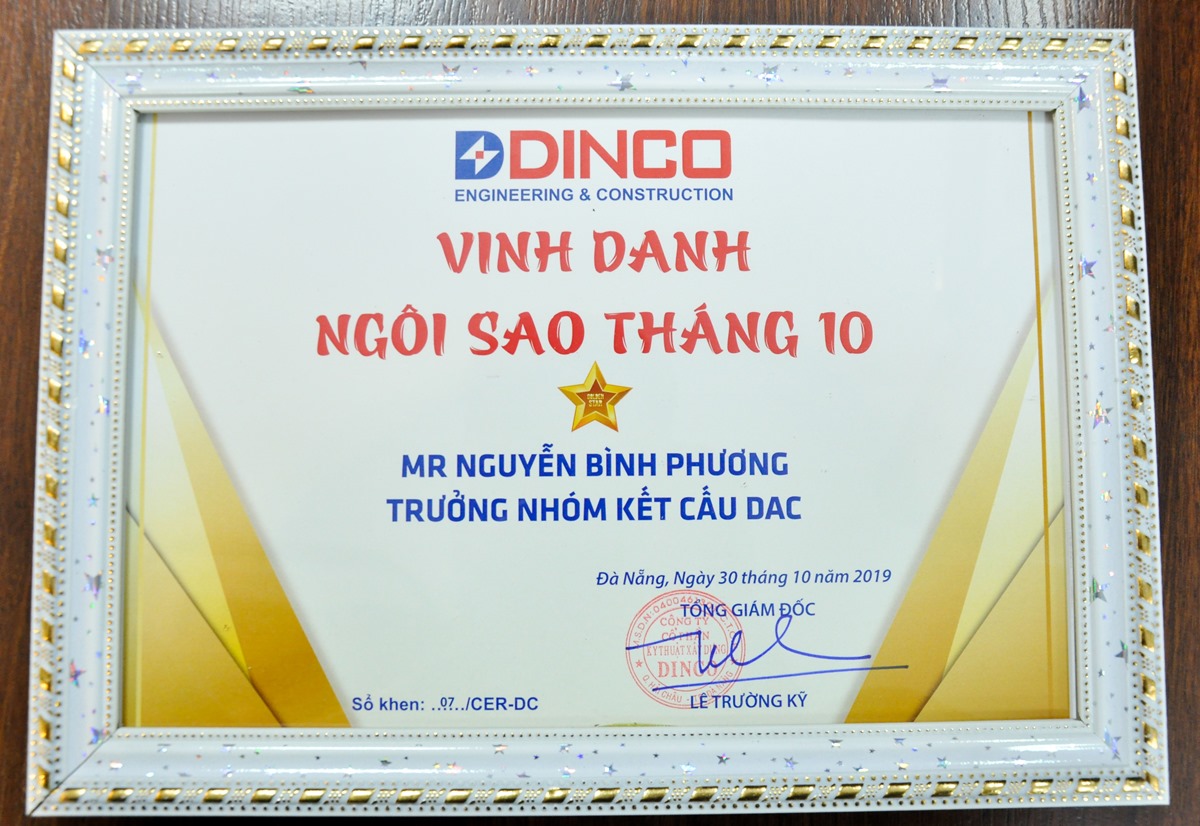DINCO E&C quyết định Vinh danh “Ngôi sao tháng 10” gồm các cá nhân và tập thể: