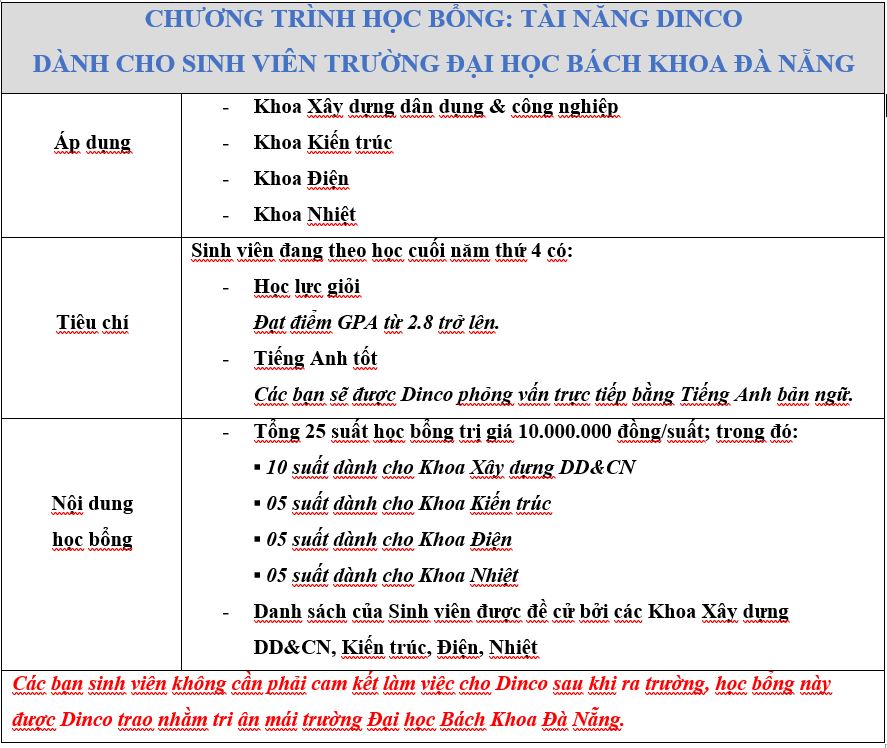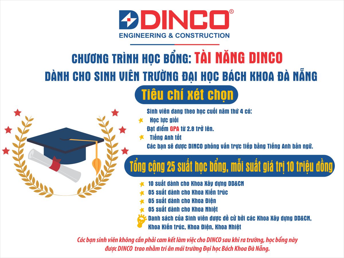 CHƯƠNG TRÌNH HỌC BỔNG ” TÀI NĂNG DINCO” 2020 – Tri ân mái trường Đại học Bách Khoa Đà Nẵng
