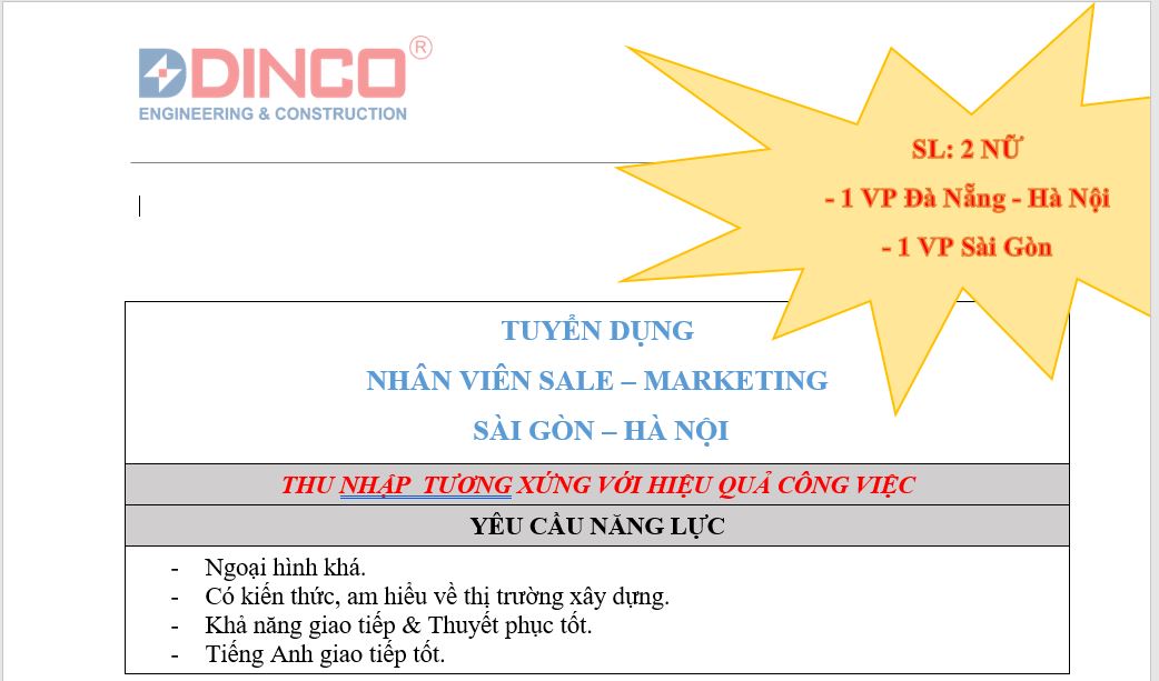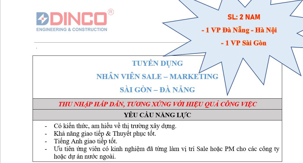 Xin hãy luôn cập nhật “Bản tin Tuyển dụng” của DINCO E&C!!!!