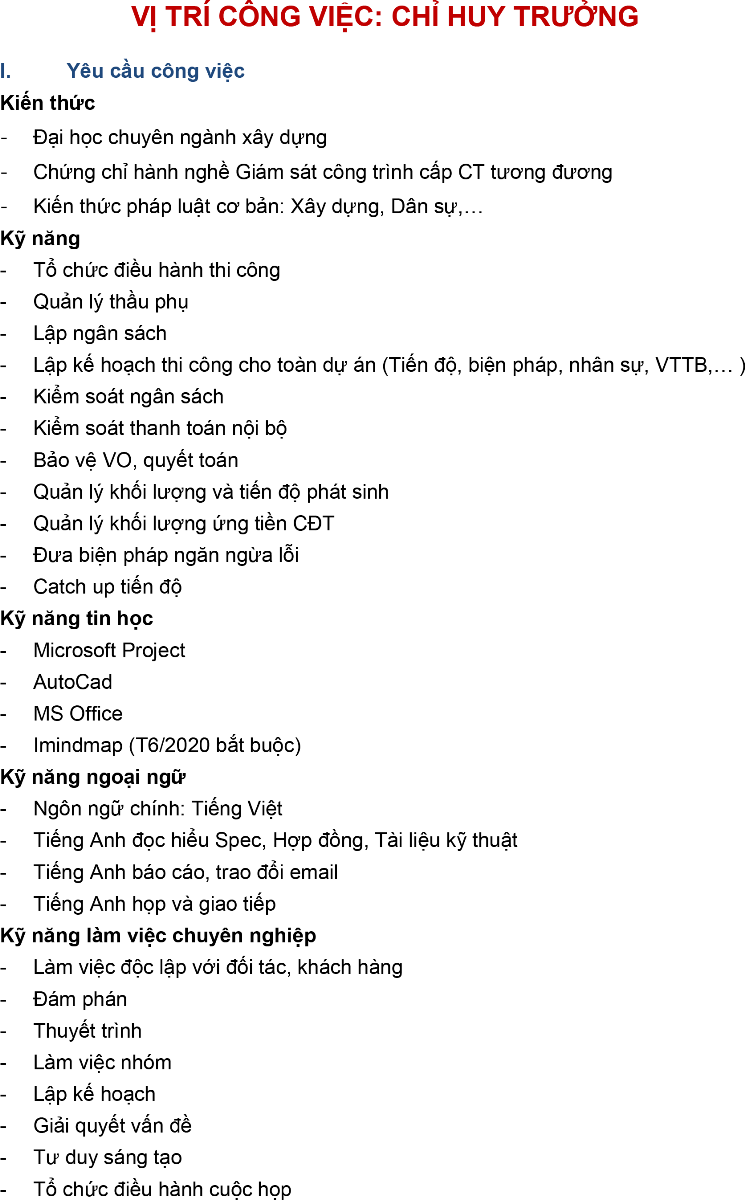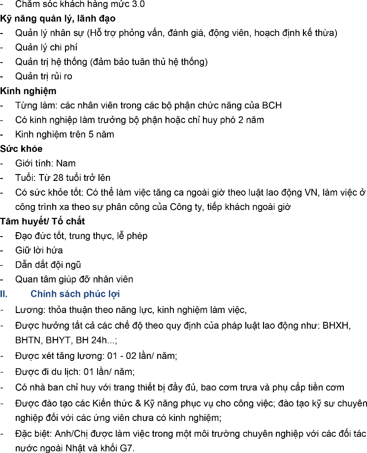 Để đáp ứng nhu cầu nhân sự cho các dự án lớn sắp đến, Chúng tôi cần tuyển vị trí sau: